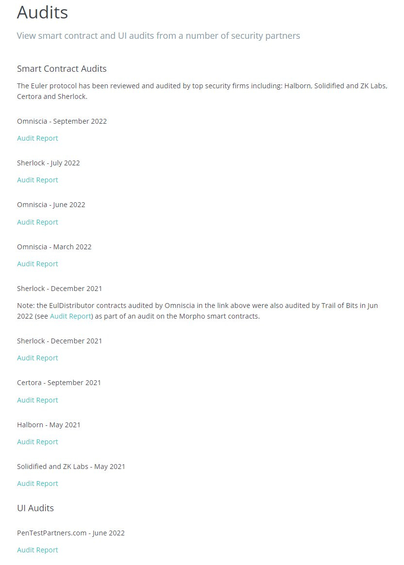 The Euler Labs CEO Michael Bentley said the DeFi protocol has always been a security-minded project, adding that its smart contracts, including the vulnerable lines of code, were audited. [more][more-EulerLabs]